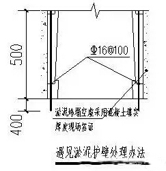 核心提示: 1、遇见淤泥处理措施 A 遇见淤泥孔桩开挖高度减为500mm,如淤泥量较少,迅速清理淤泥支护护壁。将护壁后面因淤泥流入孔桩