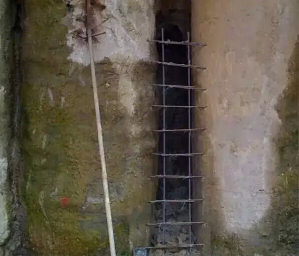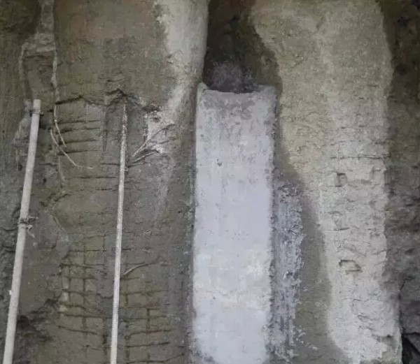1、漏点处理:清除漏水部位围护桩间的泥土和杂质,将渗漏处凿成反楔型孔洞,两侧凿到围护桩边,将围护桩表面泥土清理干净。