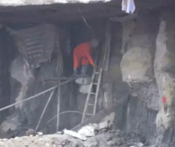 7、扎管止水:待水泥硬化满足强度(20MPa以上)要求后,将塑料导水管用铅丝扎死止水。有时由于水压力较大,扎管后水可能从其他部位渗漏出来,依照上述方法重新进行引流封堵直至堵为止,见图8。