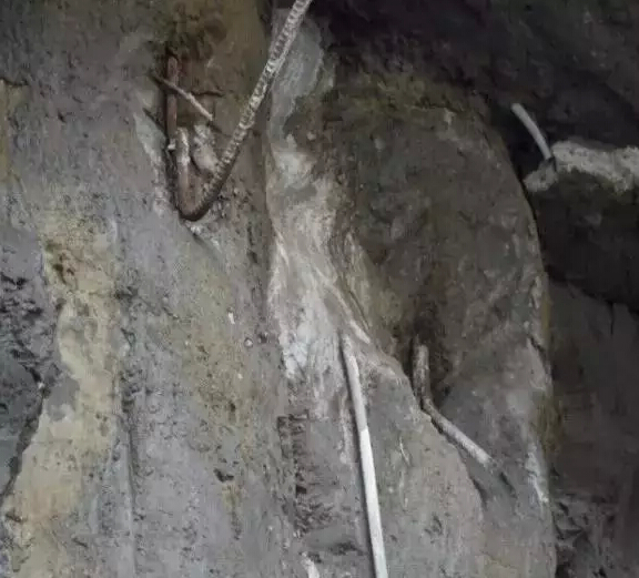 (4)流水口出现粘稠混合浆液、伴随出现气泡时,即用编织袋封堵钢管出水口处,等流水量逐渐变小直至停止后,停止注浆,观察lh后再继续注浆。