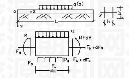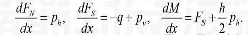式中,为梁所受到的横向荷载,、、依次为梁的轴力、剪力及弯矩,和地基对梁产生的纵向摩阻及横向反力。