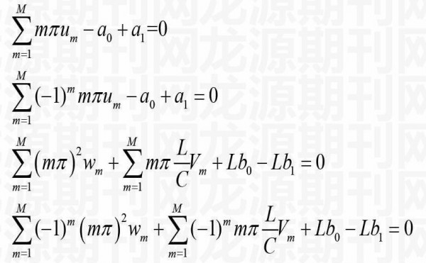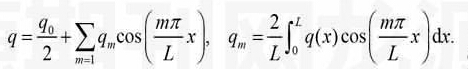 将式(7)、(8)代入式(6)中,再把、、、的系数展开为相应的Fourier正弦级数或余弦级数,通过系数比较得