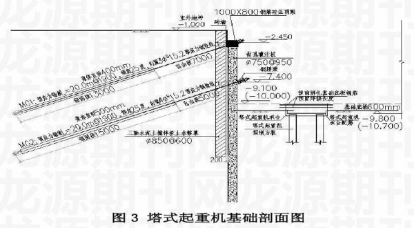 根据施工需要,本工程在基坑内布置6台塔式起重机,具体布置方案见附图2