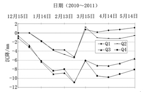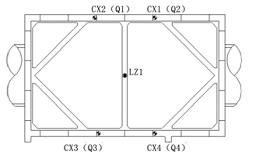 由于测点多,图3仅标出墙顶沉降、测斜、立柱(LZ1)监测点。Q代表地下连续墙墙顶沉降监测点,CX代表测斜监测点。