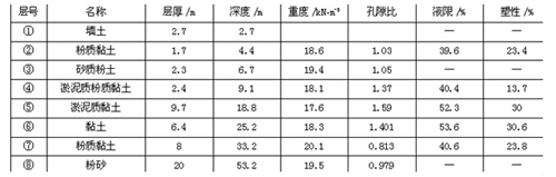 2)拟建场地地下水类型有浅部土层的潜水和深部粉砂层的承压水。浅部地下水埋深一般为2m左右,承压水埋深为10m左右。