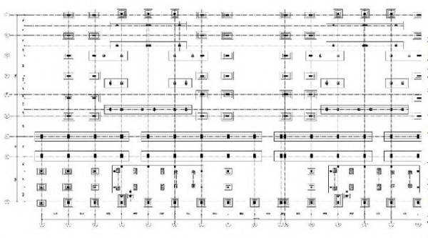 根据工艺布置情况及提供的主厂房初设荷载,结合我院多年的工程经验,对主厂房结构进行了初步的计算,并对主厂房基础进行了计算及布置。主厂房基础布置见下图: