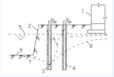 本工程地下水主要为潜水,赋存和运移于中砂、卵石混砂孔隙中,地下水稳定水位为4.5m左右。中砂、卵石混砂中的地下水渗透系数为3.8×10-2cm/s,而残积砂质粘性土的渗透系数为5.0×10-5cm/s。