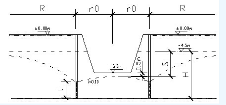 (2)基坑水位降深S=5.3–4.5+0.5=1.3m