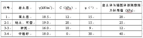 表1基坑支护岩土设计参数