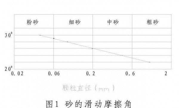 滑动摩擦是由于颗粒接触面粗糙不平所引起的,与颗粒的形状,矿物组成,级配等因素有关。土粒间的滑动摩擦可用滑动摩擦角фu表示,以石英砂为例,фu值与颗粒组成的关系如图1所示。图中曲线表明,随粒径增大,滑动摩擦角фu反而减小,其原因可能是粗颗粒的重心离剪切面远,受剪切作用,容易产生部分滚动摩擦的缘故。