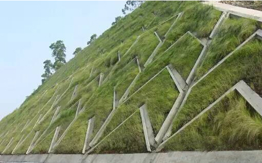 指用浆砌片石在坡面形成框架,在框架里铺填种植土,然后铺草皮、喷播草种的一种边坡防护措施。通常做成截水型浆砌片石骨架,能减轻坡面冲刷,保护草皮生长,从而避免了人工种植草坪护坡和平铺草坪护坡的缺点。