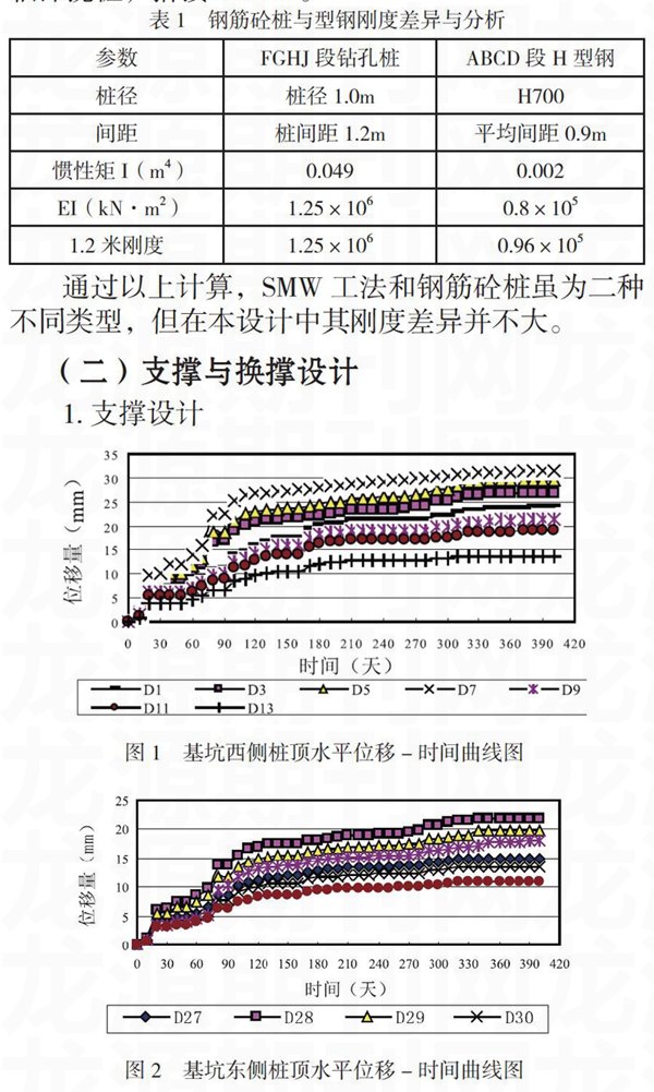 通过以上计算,SMW工法和钢筋砼桩虽为二种不同类型,但在本设计中其刚度差异并不大。