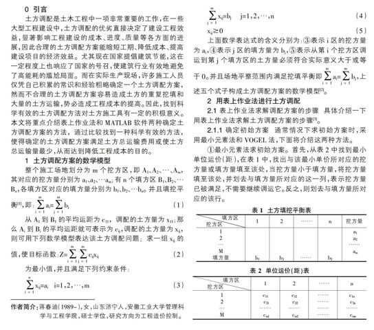 表上作业法和Matlab求解土方调配方案的比较