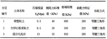 依据上述标准、规范和场地岩土工程刹牛及设计要求,加固方案计算参数及成果如下表)所示。
