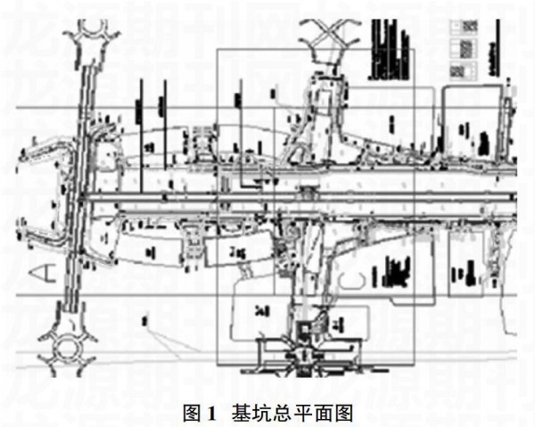来福士商业广场地下空间项目是目前市规模最大与最重要的地下空间开发项目。该项目是地下城市综合体,其发展被准确的定位,建设城市交通设施是主要的工作,将地理位置合理有效利用,将区内的商业资源高效整合,对CBD商务活动提供服务,该项目将交通基础设施、景观、商业、文娱、商务、市政、仓储物流等功能集中起来发展。该项目开挖的基坑支护工程面积为3万平方米左右。图1展示的基坑总平面图。