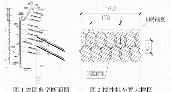 本工程典型支护设计见图1,主要支护措施为: