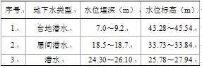 场地水文地质条件,第一层台地潜水不连续,局部可见;第二层层间潜水,水量不大;第三层潜水普遍存在,水位于基底以下较深处,无承压性。由于对本工程起影响的主要为第一层水,因此降水目标为第一层及第二层水。