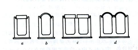 a-单槽平盖板式;b-单槽拱盖板式;c-双槽平盖板式;d-双槽拱盖板式