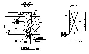 预制锚杆静压桩,桩身采用C30混凝土,采用焊接钢接头,桩段长2.0m。锚杆采用8.8级高强度螺栓,锚固入承台内长度不小于40d,在基础底板施工时由锚杆桩施工单位配合埋设,每桩4个,采用Φ30/32锚杆。锚杆锚入承台的长度为1280mm(锚杆与中部钢筋网固定)。锚杆露出承台顶面长度不小于120mm。