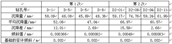 从建筑基础4个角点的沉降量分析可以看出,基础横向倾斜均小于基础的容许倾斜。