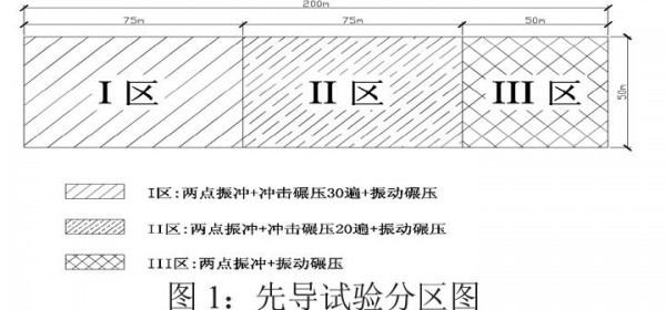 I区尺寸75m×50m,采用冲击碾压30遍+振动压路机碾压;