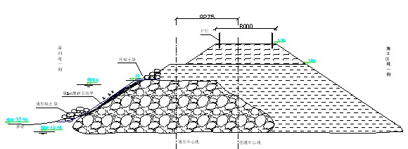 围堰施工虽然对中线、边线没有非常严格的要求,但必须确保不占用主线施工区域和未批准的填海区域,围堰施工前要求测量班在海岸两侧,用全站仪定出填筑边线并立醒目标志,随时检查标志是否被破坏或移动,有则及时更正。