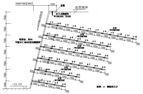1-1、2-2、(3-3)、[5-5]土钉剖面图
