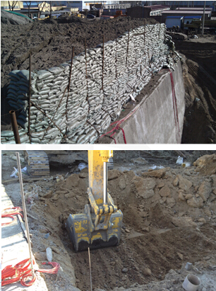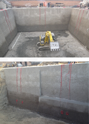 在现场对土钉墙进行模拟实际施工过程的足尺实验,测试不同形式土钉墙的土钉轴力及位移,并进行堆载。通过现场实测,对土钉内力及土钉墙后土体变形随基坑开挖的变化规律进行研究。