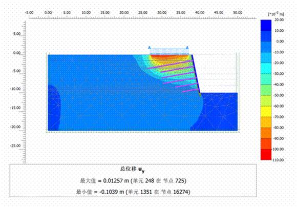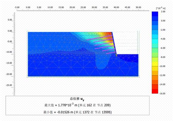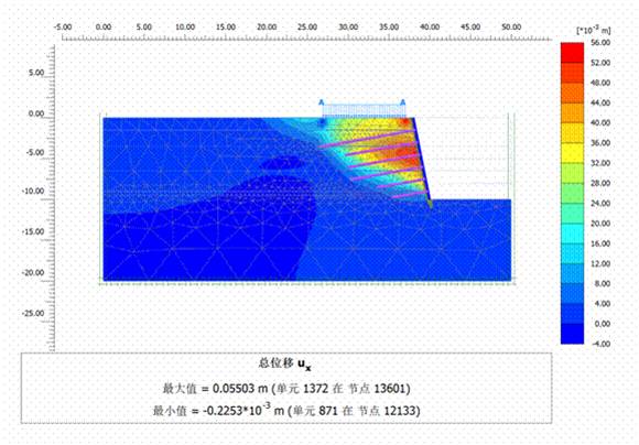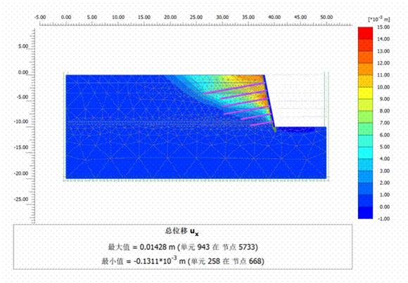 2、数值计算的位移云图(1:0.2土钉墙为例)