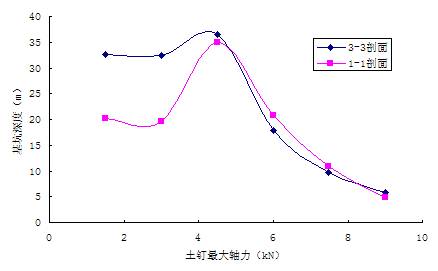 3、不同剖面的土钉轴力