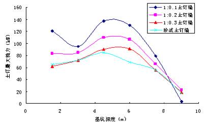 1:0.2、1:0.1土钉墙开挖到底时土钉的最大轴力