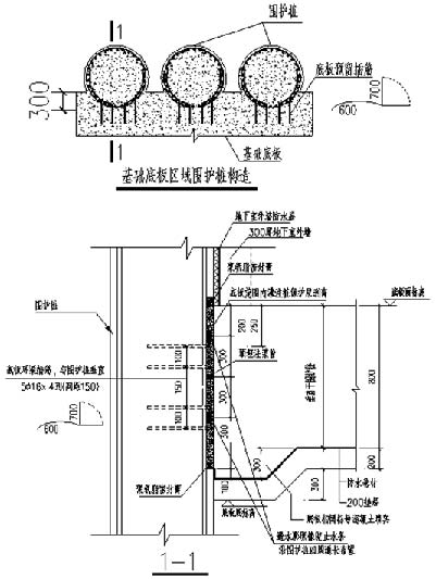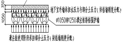 •将常规废弃的临时围护桩作为永久地下室侧壁的一部分,减少地下室外墙的厚度(可以从700~800mm减薄为350mm),节约工程造价,减少钢筋混凝土材料浪费