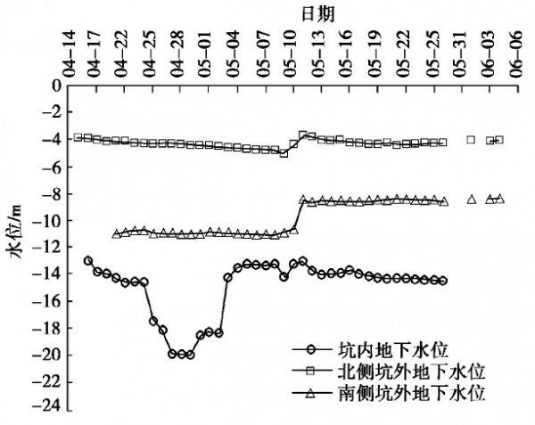 •南侧坑内外水位变化幅度最大达到3∶1