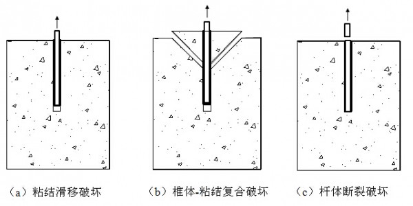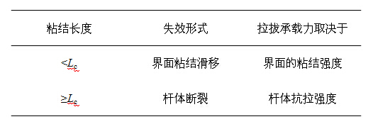 在其它条件不变情况下,随着粘结长度L增加,锚杆失效形式逐渐由(a)→(c),失效形式转变时的粘结长度称为临界粘结长度Lc。