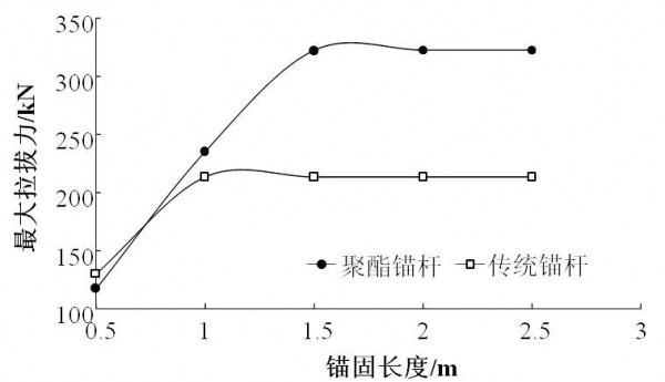 通过室内拉拔试验,表明与传统钢锚杆相比,聚酯锚杆的弹性模量较低;与砂浆之间的粘结强度也略低于钢筋,但其极限抗拉能力高于同直径的钢筋。
