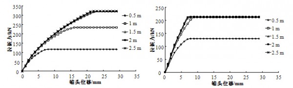 •随着锚固长度增加,最终拉拔力逐渐增加,当锚固长度超过某一值后,最终拉拔力不再变化,这是因为在锚杆的拉拔过程中存在着一个临界粘结长度。