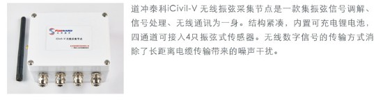 考虑到外业现场电源供电存在不稳定等因素,项目最终采用了无需使用外部电源且低功耗的无线数据采集方案——欧美大地集团成员北京道冲泰科的“iCivil无线自动化监测系统”,由无线振弦采集节点iCivil-V、数据采集基站iCivil-M、工程安全监测云平台(包括数据采集软件和数据云端存储查看)构成。方案中独特的无线振弦采集节点iCivil-V内含锂电池,功耗比同类产品低两个数量级以上,按3-5次/天的数据采集频率计算,一次满电可持续工作3-5年,充分满足项目需求。