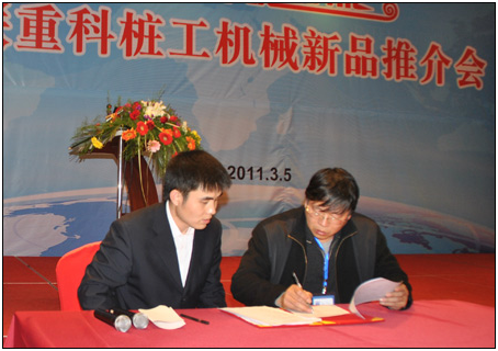 中联重科桩工机械江苏分公司经理张志强与客户签约