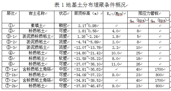 宁波市某住宅小区,拟建建筑物包括17层的住宅楼2幢,11层的住宅楼5幢,地下车库1层,总建筑面积10719m2。北部17层的住宅楼采用框架剪力墙结构,最大单柱荷载5000kN,基础采用桩基承台筏板基础,桩采用PC-500(100)预应力混凝土管桩,以地基土⑦-2a层含粉质粘土角砾层作为桩端持力层,有效桩长39-43米(3根桩对接),共打设1349根桩,设计单桩竖向承载力特征值1350kN。