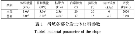 数值模拟采用摩尔库伦本构模型,各部分的材料参数如表1所示:
