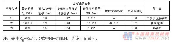 表1 锚索基本试验主要成果参数表