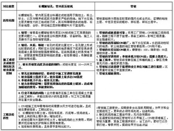 • 1)质量优势:管桩为工程现代化制作,出厂前都经过多道质量检验程序把关,运到现场又经业主(驻地监理)现场检查验收合格后方可使用,桩身质量有保证。其它在现场灌注混凝土桩场地条件及施工人为因素的影响,容易出现缩径、桩身夹泥、承载力不够等质量问题,因此,管桩的桩身质量明显优于在现场灌注混凝土的其它桩型。静压管桩节省工期,施工人员少,用电设备固定,安全易控制,工艺简单直观,便于监理。
