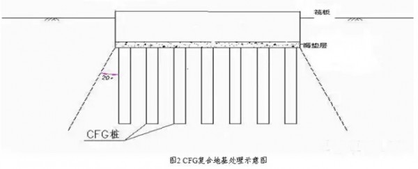 • CFG桩复合地基由CFG桩、桩间土和褥垫层一起形成复合地基。需要指出的是,褥垫层是复合地基的重要组成部分,是高粘结强度桩形成复合地基的必要条件。