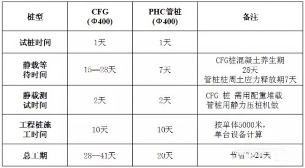 使用管桩可以比CFG节省8--21天的工期,并节省做静载的相关费用。