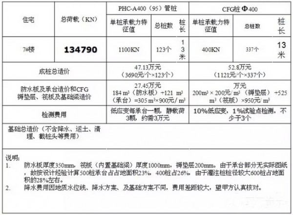 十九、管桩承台、防水板与CFG褥垫层、筏板的费用比较