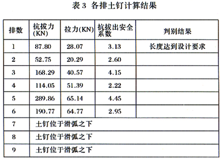 各排土钉的详细计算结果及选用的钢筋或钢绞线见表3。