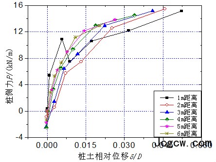 通过悬臂围护基坑开挖(最大挖深为6m)对邻近桩基p-δ曲线影响的数值模拟研究有以下结论: