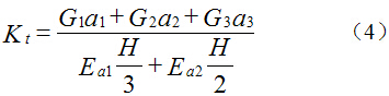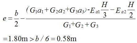 为挡土墙抗倾覆稳定性安全系数;a1为G1作用点到墙趾的水平距离,这里取2.6m;a2为G2作用点到墙趾的水平距离,这里取1.75m;a3为G3作用点到墙趾的水平距离,这里取1.45m。