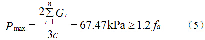 为基底应力的最大值;C为合力作用点到墙趾的水平距离,这里取2.19m;