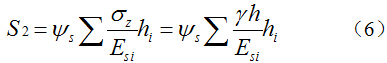 在地基施工过程中,需要大面积进行回填土,在基础四周堆载时,挡土墙会产生沉降量,如魏焕卫和付艳青在基于微型桩托换的建筑物基础加固设计[3]的研究,其值由式(6)计算。